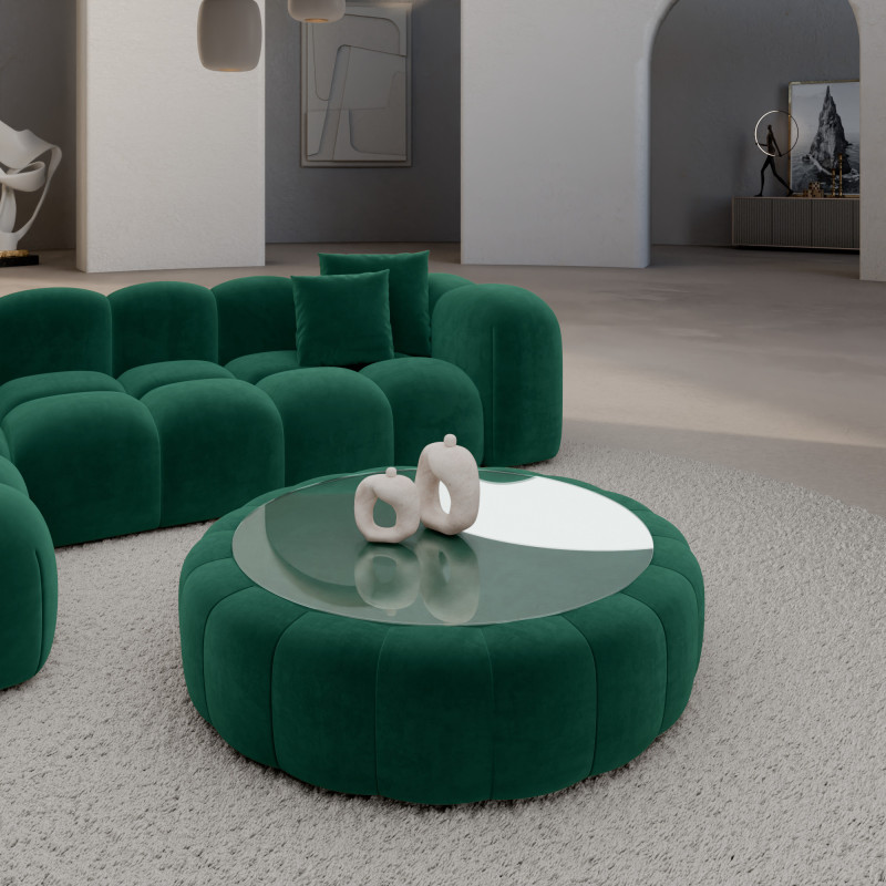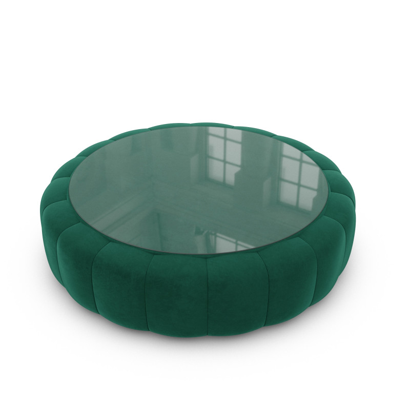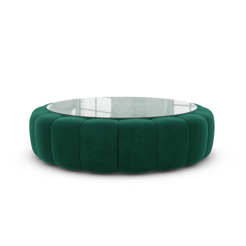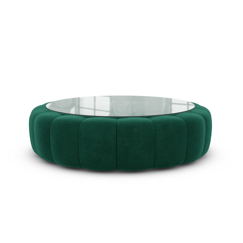 Dieser gepolsterte Couchtisch mit Glasablage vereint Luxus und Raffinesse in einem einzigen Möbelstück. Erlebe Qualität und innovatives Design in Einem.