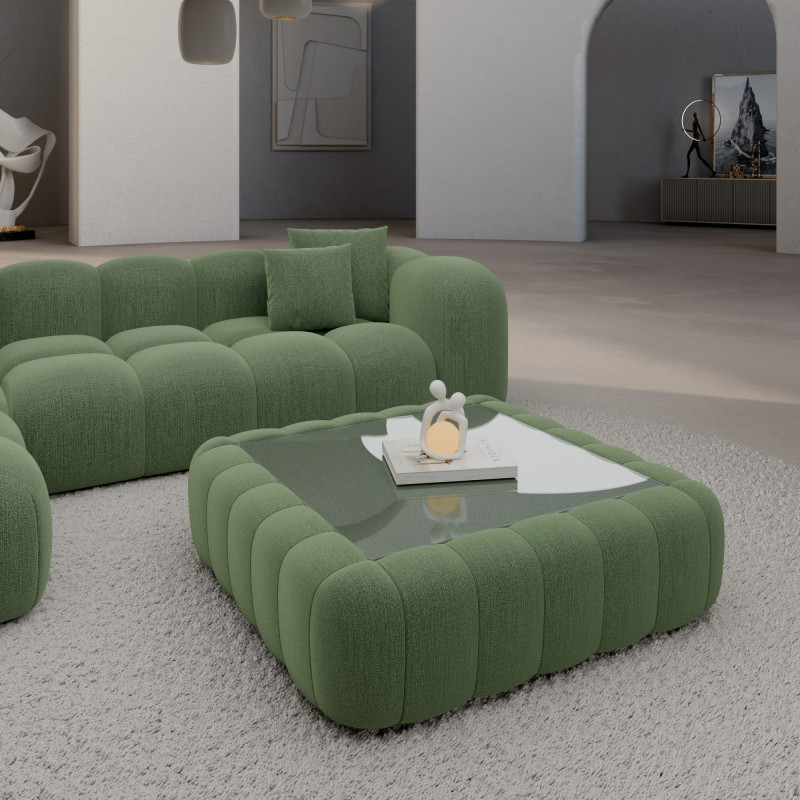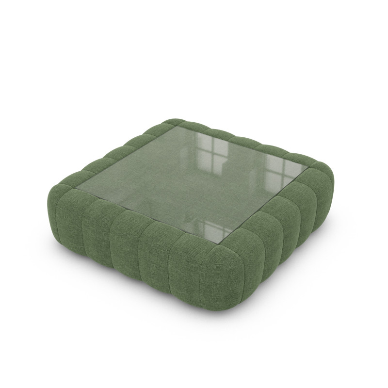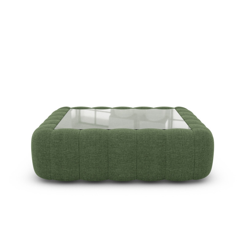 Dieser gepolsterte Couchtisch mit Glasablage vereint Luxus und Raffinesse in einem einzigen Möbelstück. Erlebe Qualität und innovatives Design in Einem.