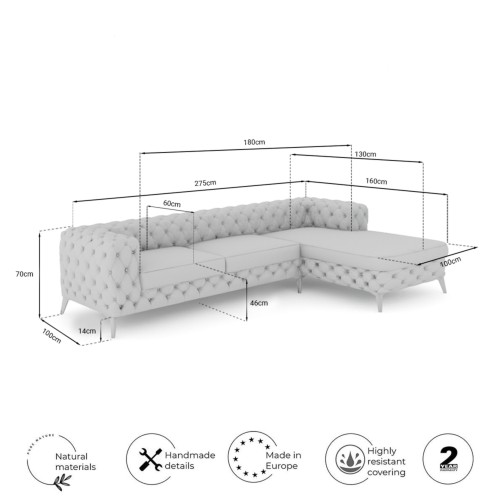 Pour garantir la qualité, nous n'utilisons que des matériaux et des technologies de production de premier ordre et produisons les meubles dans l'UE. La construction de ce canapé design est faite de matériaux durables et de haute qualité : des éléments en bois cloués supportent un cadre en hêtre massif.