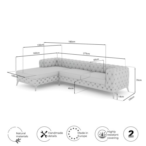 Les matériaux les plus fins de l'UE ont été utilisés pour le revêtement - de la finition des coutures à la fabrication de la structure, les normes de qualité les plus élevées sont appliquées pour un produit durable au look élégant.