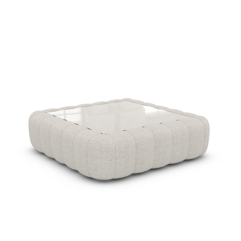 Ce table basse rembourrée avec plateau en verre allie luxe et raffinement en un seul meuble. Découvrez la qualité et le design innovant réunis en un seul.