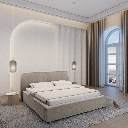 Design dalle forme perfette e comfort di prima classe si combinano in questo letto per creare un'opera d'arte totale che vi piacerà sia di giorno che di notte. Un'attrazione visiva nella vostra camera da letto durante il giorno, un'oasi di benessere per staccare la spina e rilassarsi la sera. Stile, eleganza, estetica e comfort. Create la scena della vostra casa con gusto e trasformate la vostra camera da letto in una stanza di benessere.