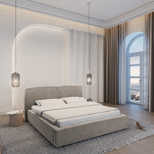 Design dalle forme perfette e comfort di prima classe si combinano in questo letto per creare un'opera d'arte totale che vi piacerà sia di giorno che di notte. Un'attrazione visiva nella vostra camera da letto durante il giorno, un'oasi di benessere per staccare la spina e rilassarsi la sera. Stile, eleganza, estetica e comfort. Create la scena della vostra casa con gusto e trasformate la vostra camera da letto in una stanza di benessere.