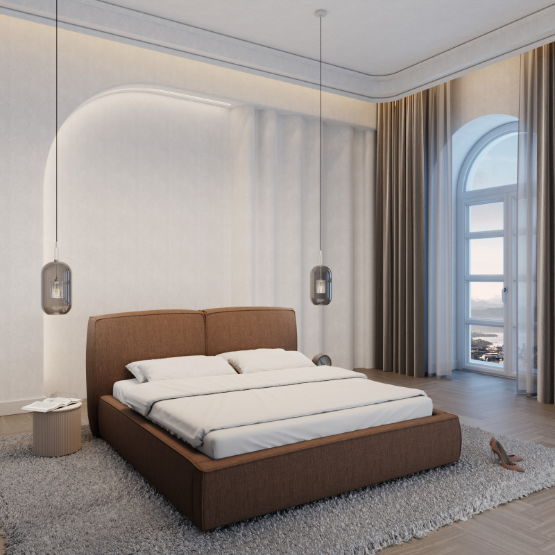 Design dalle forme perfette e comfort di prima classe si combinano in questo letto per creare un'opera d'arte totale che vi piacerà sia di giorno che di notte. Un'attrazione visiva nella vostra camera da letto durante il giorno, un'oasi di benessere per staccare la spina e rilassarsi la sera. Stile, eleganza, estetica e comfort. Create la scena della vostra casa con gusto e trasformate la vostra camera da letto in una stanza di benessere.