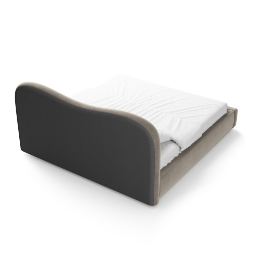 Design dalle forme perfette e comfort di prima classe si combinano in questo letto per creare un'opera d'arte totale che vi piacerà sia di giorno che di notte. Un'attrazione visiva nella vostra camera da letto durante il giorno, un'oasi di benessere per staccare la spina e rilassarsi la sera. Stile, eleganza, estetica e comfort. Create la scena della vostra casa con gusto e trasformate la vostra camera da letto in una stanza di benessere.