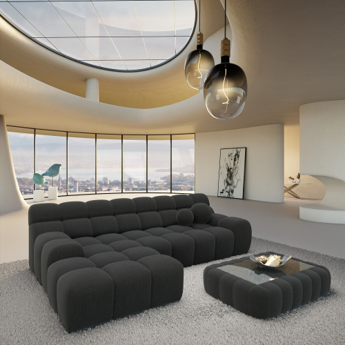 Il nostro concetto mira a coniugare comfort e funzionalità. Morbidi rivestimenti, molle soffici e una struttura robusta garantiscono un comfort eccezionale. Trascorri pomeriggi rilassanti nel tuo soggiorno con i tuoi cari grazie a questo pezzo univo di design.